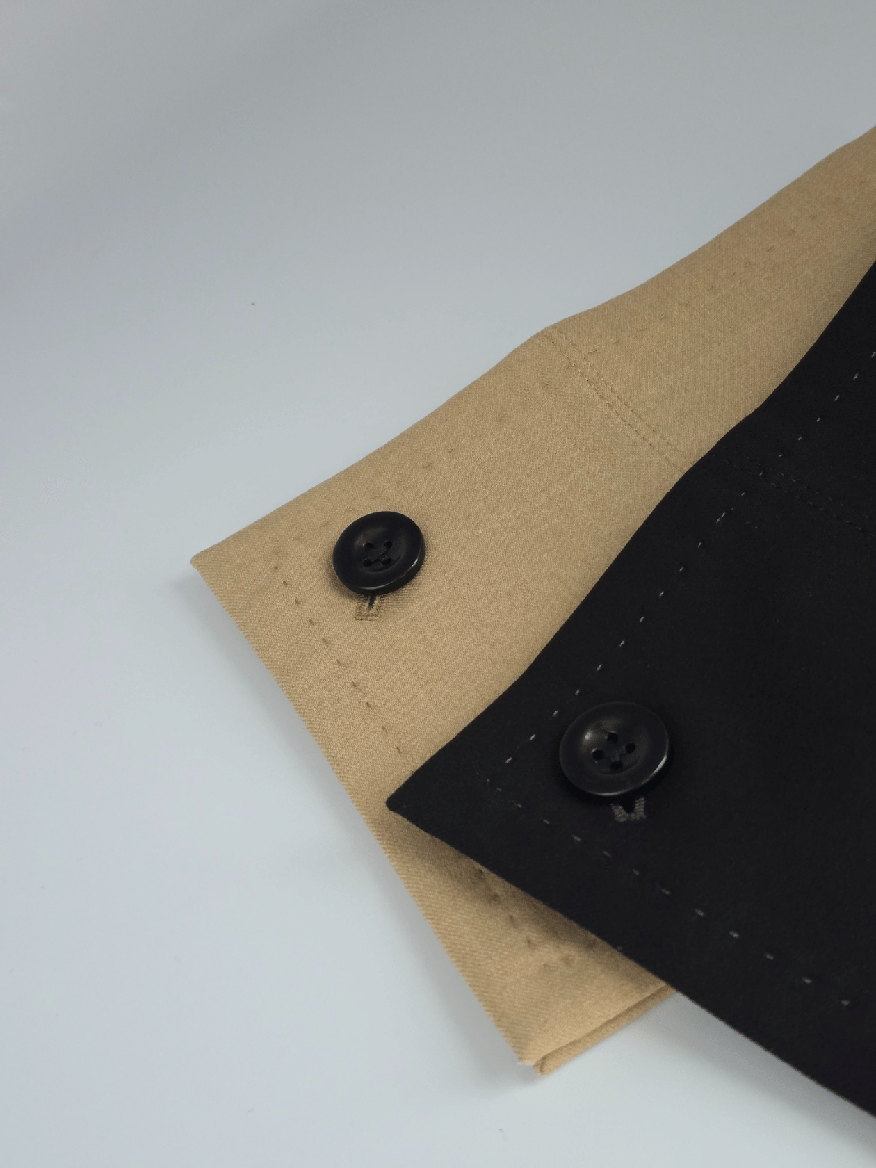 黒曜石ボタンや四つ折り構造など、細部に宿る工夫が、